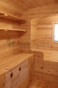 Для удобства размещения бытовых мелочей обязательно добавьте небольшие шкафчики с дверцами (2 шт) - 15 000 руб и верхние открытые полки (2 шт) - 5 000 руб. Всё необходимое в бане или доме должно быть всегда под рукой!