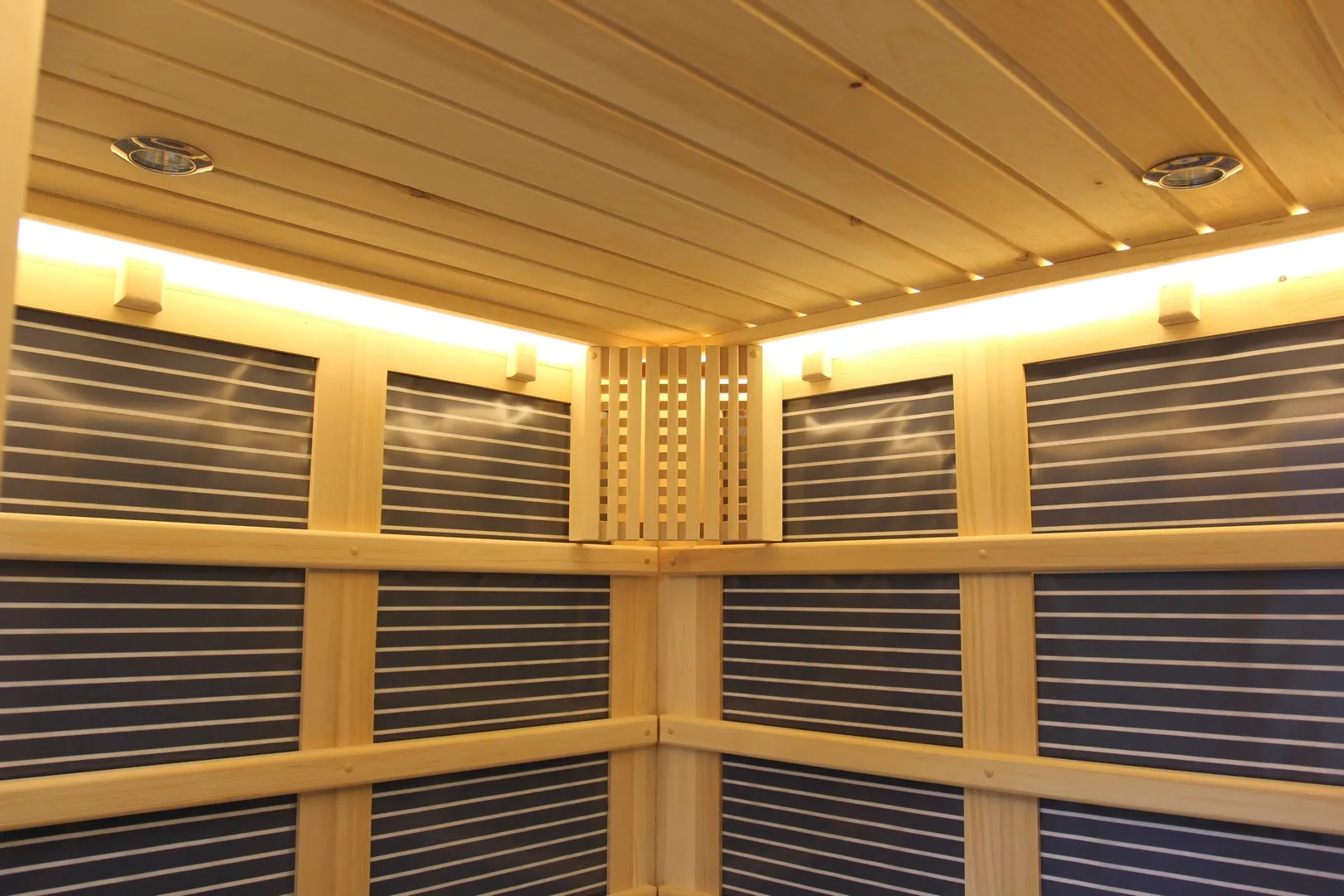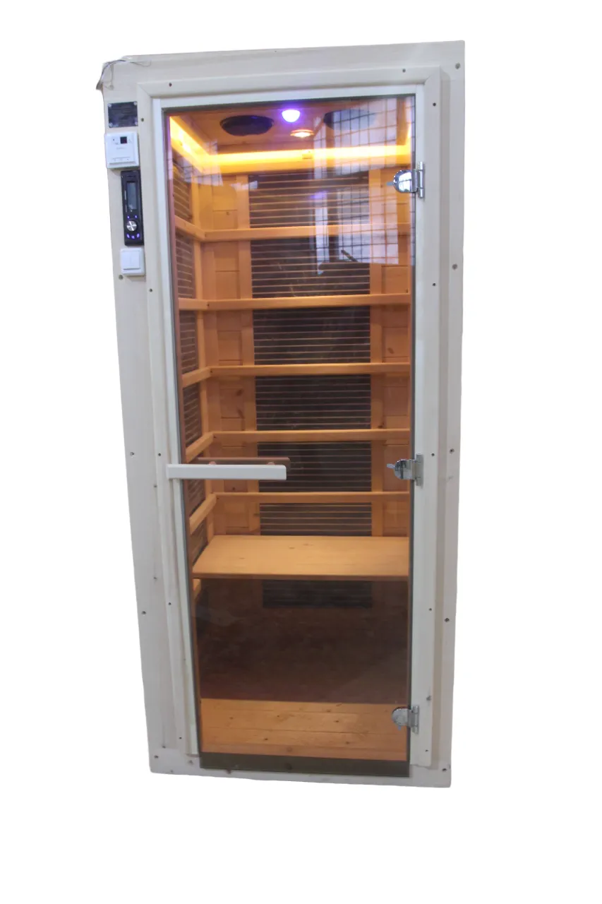 Это специально оборудованная кабина из липы для прогрева тела человека сухим теплом. Воздух в таких парных не нагревается. Инфракрасные лучи воздействуют на тело, равномерно прогревая мышцы, суставы и органы. Карбоновые излучатели, встроенные в стены кабины, обладают мягким прогревом, что полностью исключает возможность ожога. Работает кабина за счет электричества. Компактная одноместная инфракрасная сауна с карбоновыми излучателями подойдет как для домашнего использования, так и для коммерции.