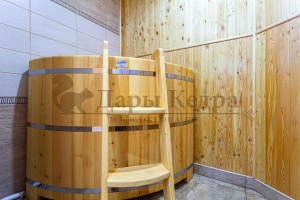 Боковой подиум, шикарное дополнение, позволяющее не только подняться в купель, но и положить вещи, что-то поставить и даже присесть.